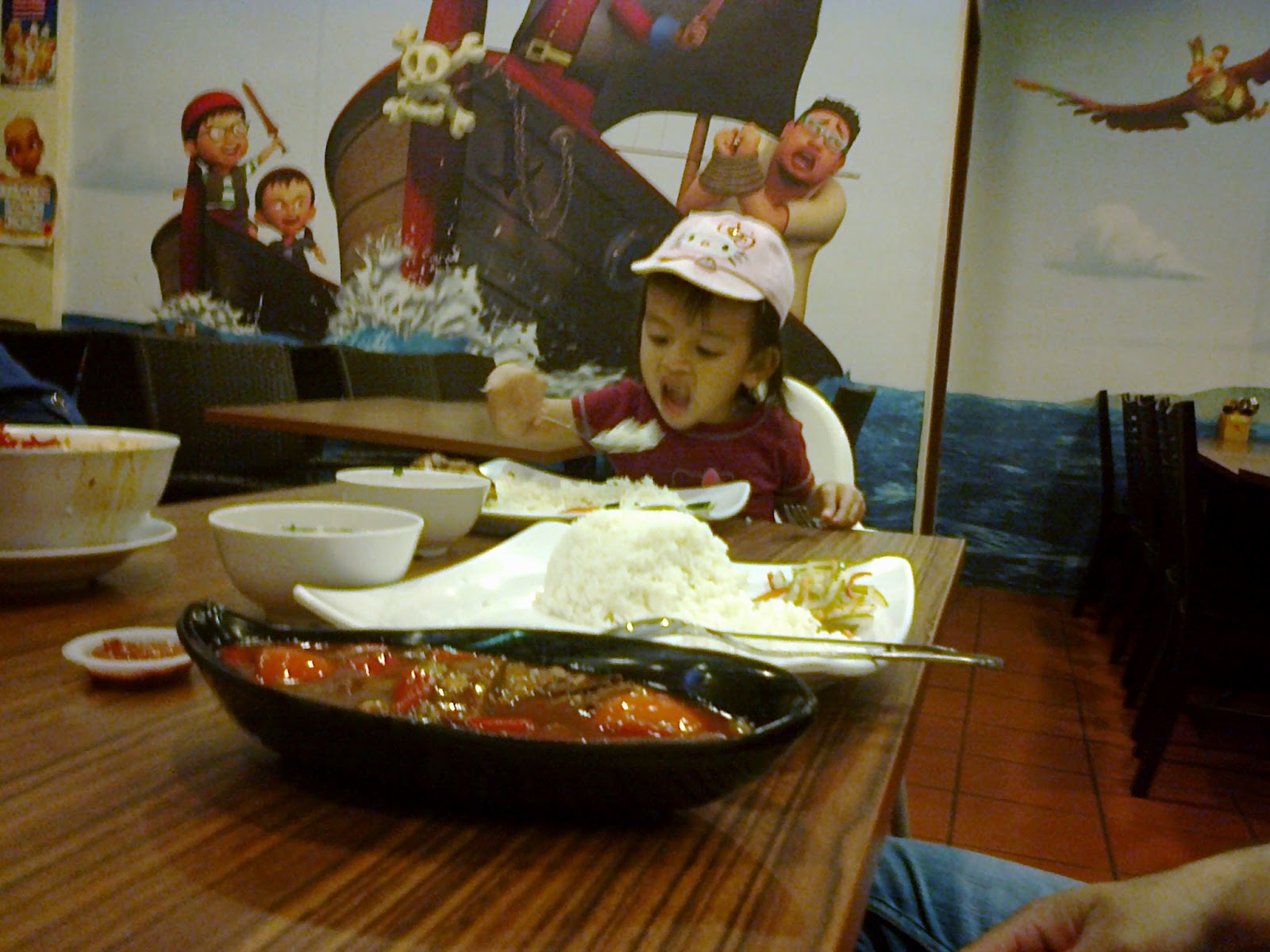 semalam 7 bulan 5 genap keisha kaisara 2 tahun, takde le nak pegi makan besar sangat tapi keisha kaisara suke sangat ngan upin ipin n hello kitty, nak cari restoran hello kitty memang takde le nasib le ade restoran upin n ipin dari segi makan tu same je cume care masakan tu berlainan naga order nasi putih ngan daging masak merah cik qaseh order mee kari..keisha plak order nasi ayam...heheh jom layan gambo..
